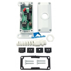 Die Anschlussdose mit Biegeschutz ist für Spiralkabel zur Signalübertragung von Türkontakten, Schlaffseilkontakten und Sicherheitsleisten an Toren.